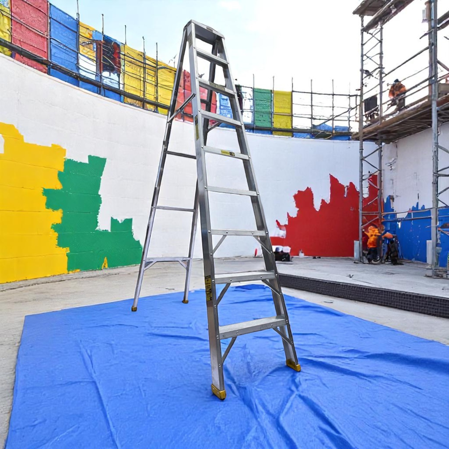 Las Escaleras Tipo Tijera RAM ® en Aluminio están diseñadas para el uso industrial, comercial o domestico tienen alta resistencia mecánica y peso ultra ligero. Perfiles de Aluminio certificado, escalones con superficie acanalada antiderrapante y zapatas antideslizantes , su diseño permite una capacidad de carga de 250 Lbs – 113 Kg , haciéndolas un producto de alta calidad y gran desempeño en múltiples ámbitos excepto trabajos en entornos eléctricos, las escaleras de nuestra línea industrial son fabricadas siguiendo norma Americana ANSI – ASC A 14.2 aplicables a las escaleras de aluminio.