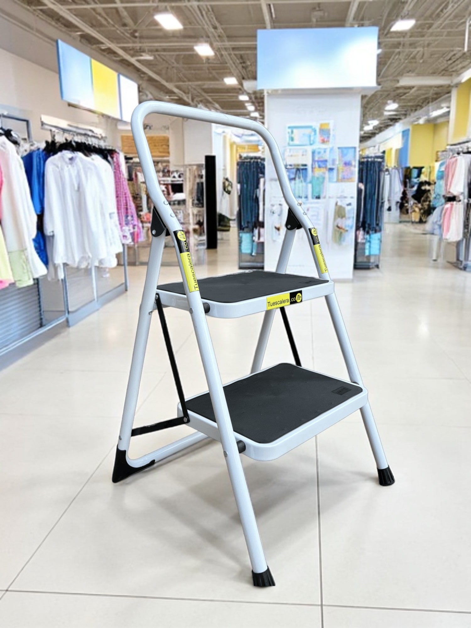 Las Escaleras tubulares son una combinación de practicidad, seguridad, estética y simplicidad, su característica plegable hace que al cerrarla ocupe un mínimo espacio y pueda ser almacenada en diversos lugares, con un suave movimiento al abrirla se convierte en un elemento seguro para labores de bajo impacto , su característica principal es su gran superficie de pisado antideslizante en cada escalón que permite pararse firmemente , cuenta con baranda superior de sujeción para permitir un soporte adicional con las manos , fabricadas en tubos de acero asegurando sea un producto resistente hasta 150 kg pero con estructura liviana para fácil manipulación, acabado en pintura blanca brillante es ideal para mantener la estética en puntos de venta, hogar , oficinas o donde se requiera practicidad para alcanzar alturas menores, Fabricadas en Lugar de Origen bajo norma EN 131 no Certificadas.